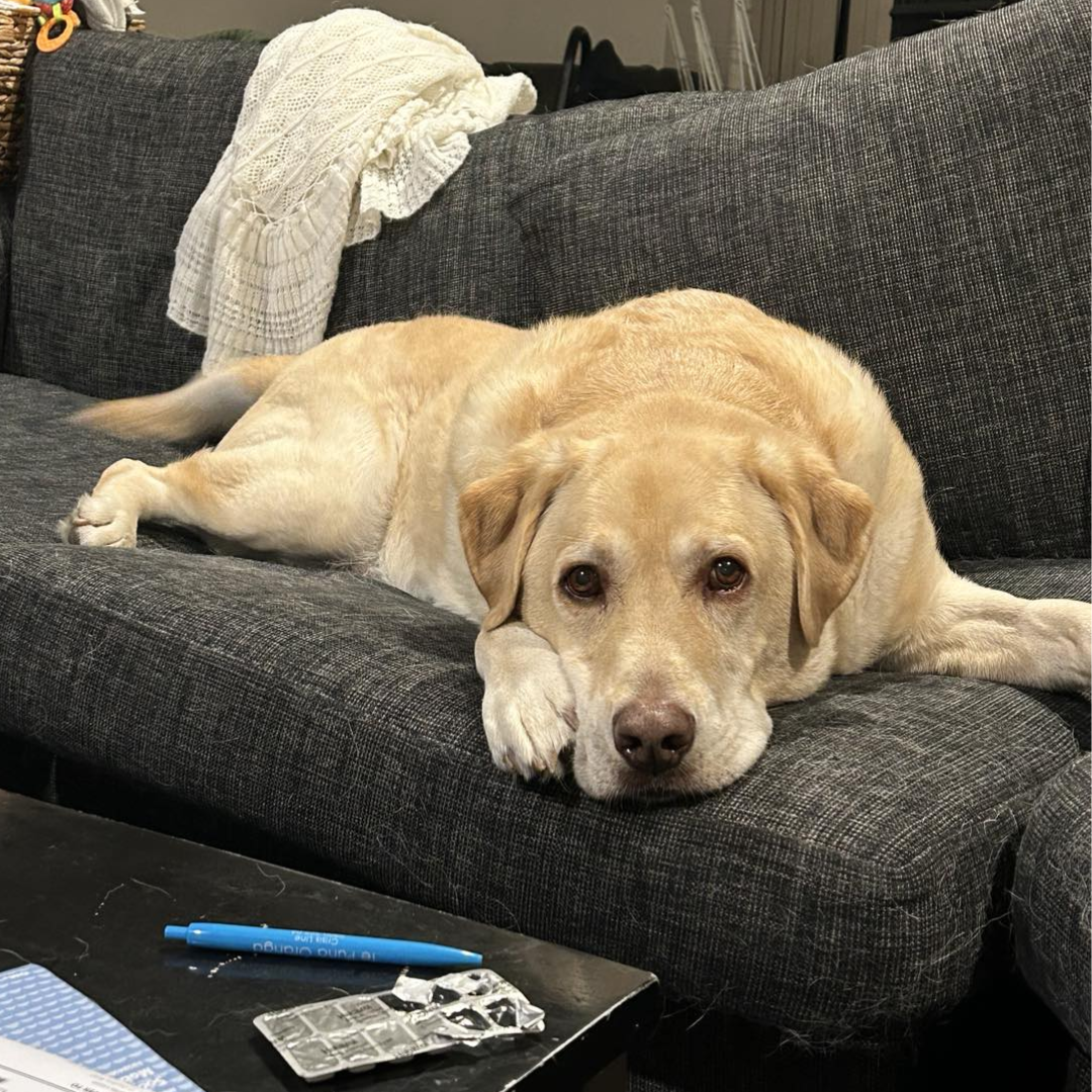 Roland, the longsuffering Labrador (“Chase Roland?” “No!” “CUDDLE ROLAAAAAAND”)